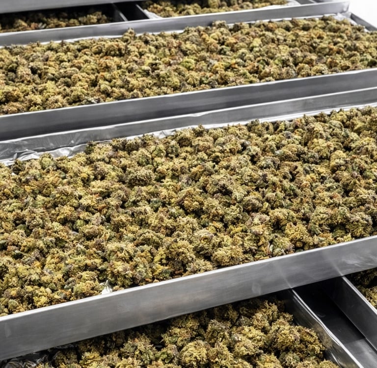 Para cannabis, o foco é preservar canabinoides (THC, CBD) e terpenos, voláteis ao calor. O processo adapta-se à biomassa fresca ou pós-colheita.