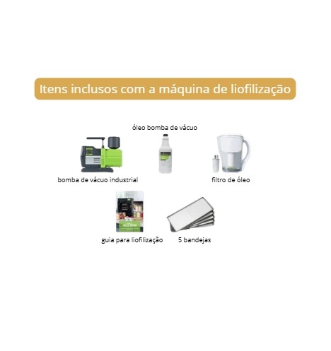 O liofilizador médio é enviado em uma única embalagem, com peso total de 81,2 kg.