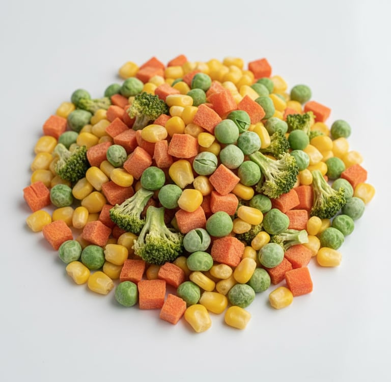 Entre os vegetais liofilizados mais consumidos no Brasil, destacam-se ervilhas, milho, cenouras e brócolis, conforme dados do Sebrae sobre volumes em conservas vegetais e relatórios de conservas. Esses itens lideram por sua versatilidade em pratos prontos e snacks, com o milho representando volumes crescentes em misturas para sopas e saladas – impulsionados pela produção nacional abundante e demanda por conveniência no food service. Relatórios como os da Mordor Intelligence apontam que ervilhas e cenouras crescem acima de 10% ao ano localmente, graças à retenção nutricional superior (até 97%) e redução de perdas pós-colheita em até 50%.